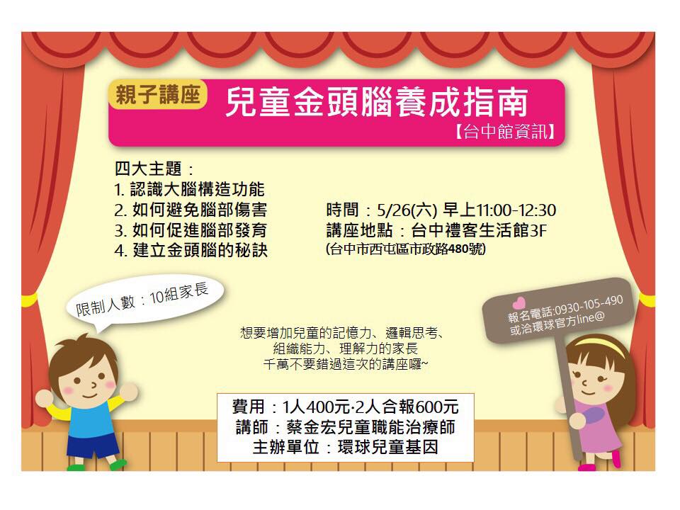 【講座資訊】兒童金頭腦養成指南